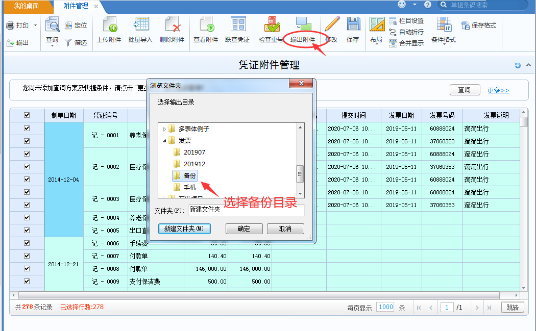 Ø 一键备份:快速导出系统中上传的附件,按凭证号分别存放,方便原始文件输出、使用和备份管理。